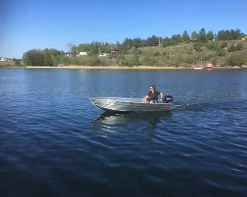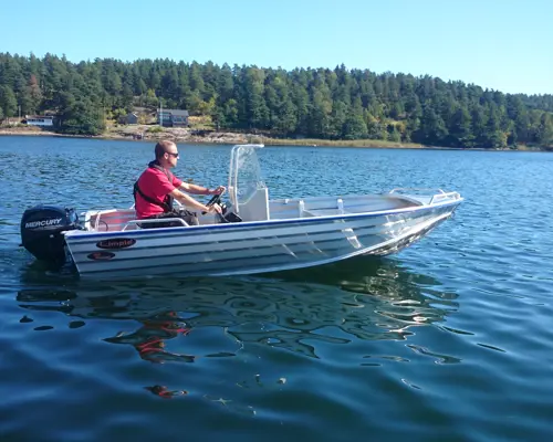 En robust 13 fots båt i helsveiset aluminium, med stor bredde og høyt fribordKimple Hunter er en forsterket utgave av Ki...
