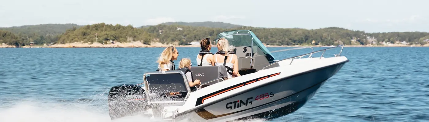Sting 485 S er en perfekt skjærgårdsjeep for deg som bruker båten til kortere turer i skjærgården. 485 S er designet for at du enklere skal kunne bevege deg inn og ut av båten, samtidig som den gir enklere lasting og lossing med en bred baug og bred dørk.. I tillegg finner du godt med stuerom for bagasje under konsollen og kjørebenken, samt en romslig og behagelig aktersofa. Alle disse elementene gjør at Sting 485 S passer perfekt for deg som ønsker et bekymringsløst båthold og raskt kunne ta deg ut på de korte sommerturene i skjærgården.