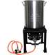 Krabbekokersett fra 1852 med stativ, brenner, regulator og gryte med innerrist. Her har du alt du trenger for en skikkelig krabbekoking. Den store størrelsen på kasserollen gjør at flere bruker settet til ølbrygging eller annen matlaging som krever stor gryte.